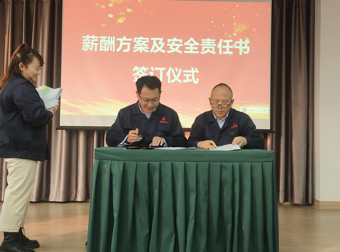 會(huì)議與管理干部、首席專家簽訂《目標(biāo)責(zé)任書》、《年度薪酬方案》、《安全責(zé)任書》。