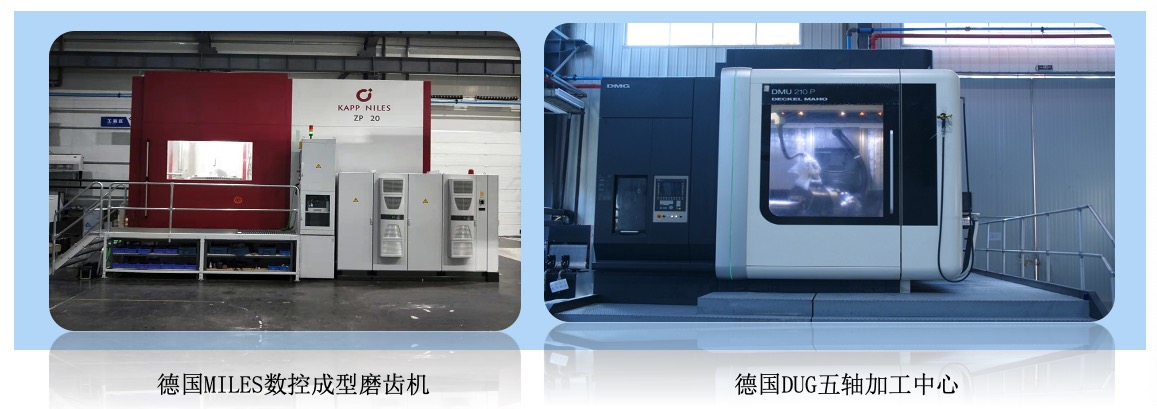 公司擁有德國DMG五軸加工中心、意大利PAMA鏜銑加工中心、德國NILES數(shù)控成型磨齒機等先進設(shè)備、德國申克動平衡機等國際先進加工設(shè)備,擁有各類專業(yè)加工與檢測設(shè)備,可加工制造直徑達4米、模數(shù)不限、精度達DIN-3級、齒面硬度達HRC58-62的各類整體式齒輪件、無退刀槽的人字齒以及高精度箱體,同時掌握世界領(lǐng)先的螺旋錐齒輪單配加工技術(shù)。